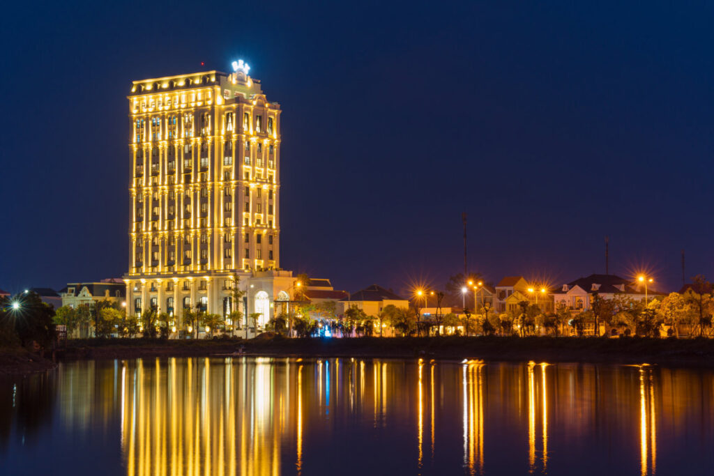 Nằm ở khu vực trung tâm Tỉnh, trên cung đường đẹp nhất thành phố Đồng Hới, Khách sạn Royal là lựa chọn lý tưởng của du khách mỗi khi đến với Quảng Bình. Với góc nhìn tuyệt đẹp, hướng nhìn ra bờ hồ, Royal Quảng Bình mang lại cho quý khách một khoảng không gian yên ả, lãng mạng ngay giữa lòng thành phố trẻ sôi động. Đây cũng là vị trí hoàn hảo để thưởng thức cảnh sắc Quảng Bình lúc về đêm. Khách sạn tích hợp nhiều hoạt động giải trí như nhà hàng, cafe, buffet, sky bar, bể bơi, … vì vậy quý khách có thể thư giản dạo bước từ phòng ở của mình cho một vòng city tour đầy thú vị để khám phá nhịp sống thường nhật của thành phố hoa hồng xinh đẹp.